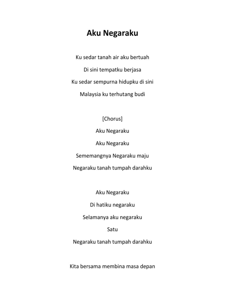 Lirik Lagu Aku Negaraku Lagu Wajib Perhimpunan Sekolah